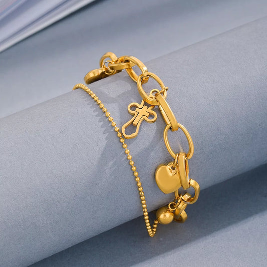 Cross and Heart Charm Bracelet